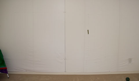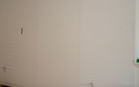 Since I have huge white walls, the first step in preparation is to mark off the sizes I am working with. My plan is 9 larger pieces, the first 5 fit on my design walls and are marked off below.